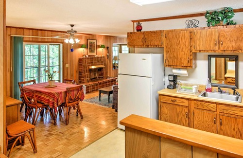 Escape to the peaceful South Carolina forest during your stay at this 1-bedroom, 1-bathroom vacation rental cottage in Mountain Rest. Guests can spend afternoons traversing the miles upon miles of hiking and biking trails that surround the community, or just take it easy and enjoy local bluegrass musicians on weekends! Return to spend evenings relaxing on the covered porch as the day slowly fades to night or cozy up in front of the fireplace for a movie night.