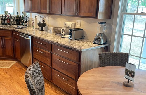 Indulge in a nourishing meal prepared in the beautiful kitchen. Delight in the cozy ambiance created by the heated hardwood floors throughout the main level, and on cooler evenings, bask in the comforting warmth emanating from the stone fireplace. After a day filled with adventure, pamper yourself by immersing in the pebble stone rain shower or soaking in the claw bathtub. Ascend the spiral staircase to a loft that offers a versatile space for sleeping, enjoying television, engaging in card or board games, and marveling at deer grazing in the nearby apple orchard from the upper deck.
