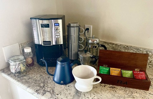 • Coffee bar - we offer a drip coffee maker, French press, and pour over implements. Well stocked gourmet kitchen