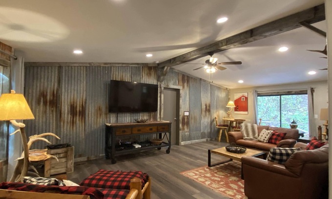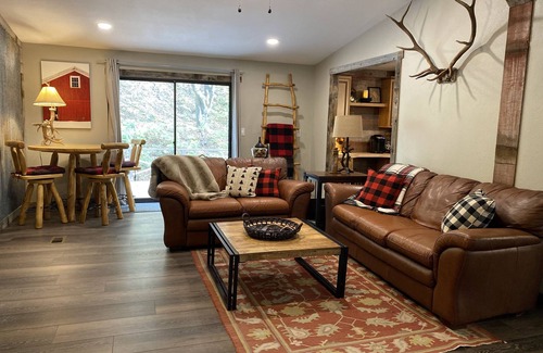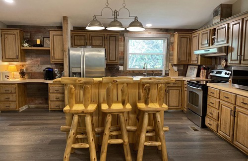Newly renovated, our secluded mountain house on 1 acre offers a private vacation retreat, surrounded by the beauty of nature. Our house offers a blend of rustic elegance and modern comforts. The open-plan living plan has vaulted ceilings, spacious kitchen, 3 bedrooms, 2 baths, and laundry room. Enjoy the window views that frame the beautiful, wooded landscape and wildlife.