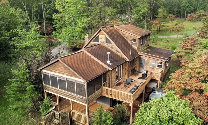Welcome to Mountain Maple Retreat – a spacious, light-filled chalet-style home set on beautiful, mature grounds in the West Virginia mountains. Whether you're planning a family reunion, friends’ weekend, or peaceful retreat, this large, well-equipped home has everything you need to relax, unwind, and make lasting memories. This spacious, family-friendly chalet cabin is perfect for group getaways, reunions, or a weekend retreat in nature. With 4 bedrooms and multiple hangout zones, there's room for everyone to spread out and relax.