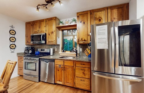 With free WiFi, a washer/dryer, and over two acres to roam, you'll have all the comforts of home in a stunning mountain setting.