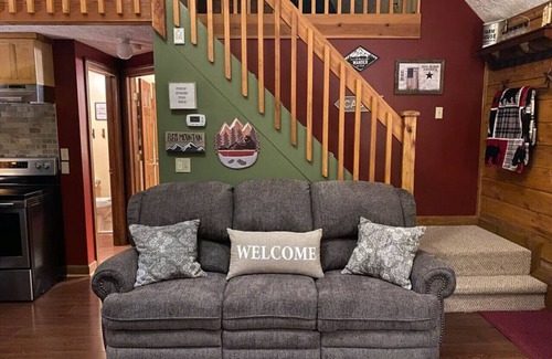 As you step inside the recently renovated cabin, you'll find a welcoming living/dining area with a cozy fireplace, a fully equipped kitchen, and a tranquil master bedroom, all on the entry level. A full bath with shower ensures your stay is comfortable. Journey upstairs to the delightful loft, housing twin beds, additional space for an air mattress, and an exciting arcade game for hours of fun.