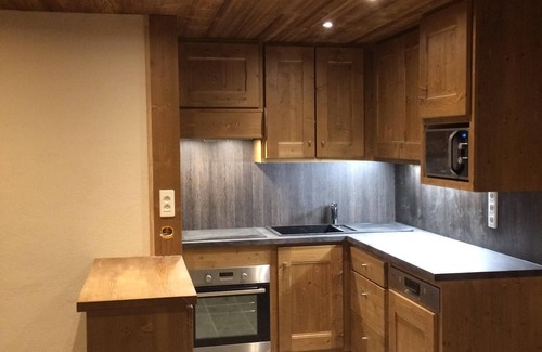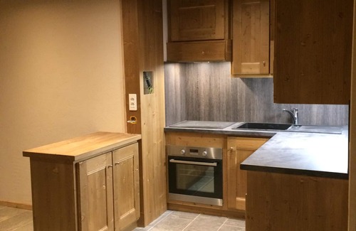 The wooden kitchen combines modern and Savoyard style. It is composed of a dishwasher, an extractor hood, plates, and contains all the equipment necessary for the design of good small dishes.