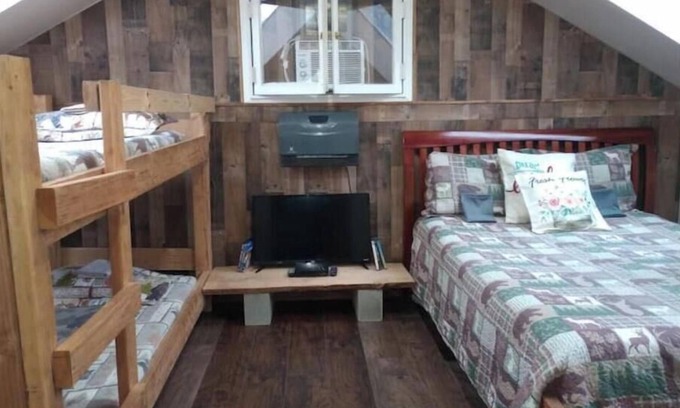 Enjoy romantic star gazing on the patio. Game loft with foosball. Living rm has a big screen TV for dvds. no wifi. 10 min to river or lake.