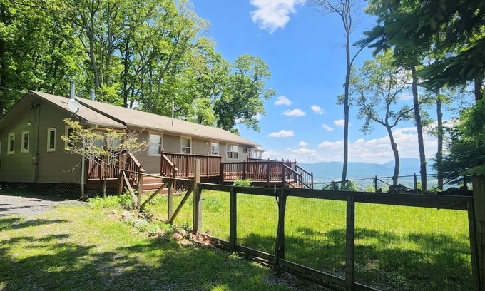 Enjoy this spacious cabin located on a private road along the top of the mountain at the edge of the George Washington National Forest. This cabin has 3 bedrooms, Within walking distance to Kennedy's Peak hiking trail. It has a glass sun room and deck with incredible views of the Shenandoah Valley and bends of the Shenandoah River. This pet friendly cabin has a fenced in yard and "L" shaped gated deck.