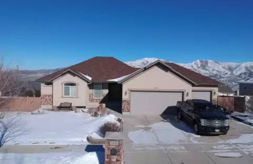 Beautiful home!!! Can sleep up to 6 (Floor Space if more) Only 25 miles from Lava Hot Springs and 5 miles from downtown Pocatello. Relax with the whole family here with plenty of space in a beautiful area. Outdoor patio with a beautiful view of the Idaho mountains. Bedroom has a queen size bed and a full size futon that can be used as a bed if needed. The living room has a bar area with a microwave, toaster and two mini fridges. There is a full size futon as well as a queen air mattress that can be used. Gorgeous fireplace under the TV. Can sleep 6 comfortably with the Queen bed, futon and air matress, but plenty of floor space as well.