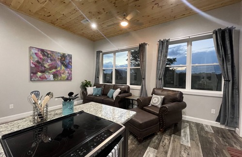 Andrea’s Farmhouse is a newly built, 850 sq. ft. gem saturated with large windows to soak in all the picturesque natural views that surround it. It has an open floor plan with plenty of room for kids and guests.