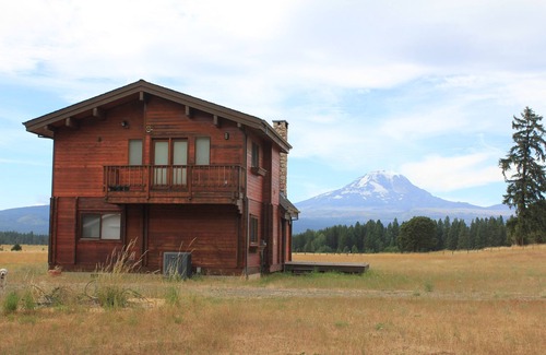 Cabin with Panoramic view of Mt. Adams adjoining Conboy wildlife preserve. Elk Deer and a large variety of birds can frequently be observed from the porch or the cozy living room with a stone fireplace.