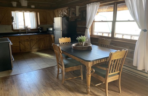 You know, I came to this area for over twenty years before I finally purchased and retired here. I spent twelve years travelling in the Music business and have traveled all over the world. There are very few places in the world like Ridgway. I am amazed at the continuing outdoor activity that never seems to stop. It just transitions from winter activities, skiing, cross country ski, ice climbing, snowmobiles, snow boarding and on and on. Then we transition in to Spring and all that goes with it, from Mountain Climbing, Hiking, Jeep Trails to die for, Fishing, Boating, Motorcycling and on and on. The beauty that surrounds this little community is surreal. When I purchased this perfectly located property it had This beautiful log home rental with spectacular views of the Cimarron and the San Juan Mountains. The cabin is now a fully furnished mountain retreat with everything you will need for a comfortable, affordable stay. Private road with lots of wildlife. Beautiful old Cottonwood trees with an old tire swing. A creek runs through the pasture keeping the grass lush and green. Enjoy the panoramic mountain views. Far enough away from civilization, yet walking distance to town! Located on a farm with lots of wildlife. Only 26 miles from the nearest airport. 2 miles to the famous Ouray Hot springs. 9 miles to Ouray, an easy drive to the Ice Climbing Park off of Camp Bird Mine Rd. and Imogene Pass, renowned for Jeeping and 4x4s. 35 Miles from the Ski Lifts in Telluride. If you think you like staying in Telluride, then you should try this very special Gem in Ridgway. You will be surprised at how open things feel in this Valley. The town is full of incredible restaurants and close to all of the restaurants in Ouray. Join us at the Mountain View Cabin for your next stay in the area.