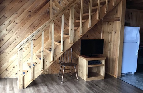 2 Bedroom cabin overlooking the Katahdin Mountains. Nestled in the mountains of Island Falls. Direct access to the Snowmobile & ATV Trails. Lake Front Lot on Pleasant Pond with ice fishing and summer boating, fishing and swimming. Excellent hiking trails complete with waterfalls within a short drive. Units include one bedroom and one bathroom downstairs with a fully equipped kitchen and living-room. Upstairs includes a loft bed and a master bedroom/bathroom combo.