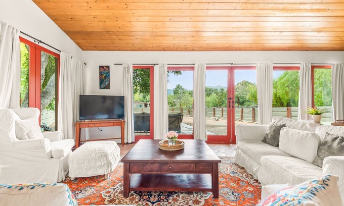 Discover this wonderful cottage in Agoura Hills. This cozy 1-bedroom retreat offers a spacious front yard, stainless steel appliances, full size kitchen, washer/dryer, WiFi, outdoor seating, and a prime location in the Santa Monica Mountains. We offer an additional space with a comfy twin bed for visitors or additional guests. The living room is surrounded by large windows showcasing the incredible mountain views. Guests can relax in this pleasant and welcoming home away from home. We look forward to welcoming you to our place.