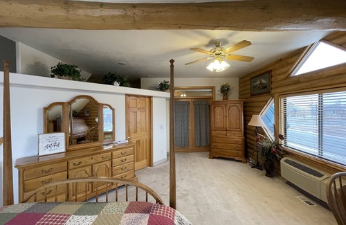 Mountain View Lodge is a log-built home with 5 Bedrooms, 6 Bathrooms, a full kitchen, living room, game room, and laundry room for you and your family. Mountain View Lodge is a great option for small and intimate groups to large corporate or family events. There are a total of 9 Queen beds, and plenty of space for the whole family. Mountain View Lodge is located on the second and third levels above the onsite Chinese Restaurant. It is accessed via a flight of stairs (no elevator available).