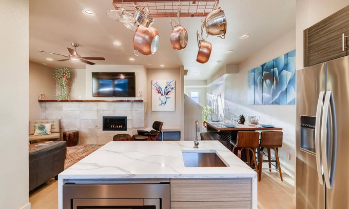 Located within walking distance of Old Town, New Belgium Brewery, and the Poudre River Trail, these townhomes place you in the heart of Fort Collins. Spend your days touring local breweries, strolling along the river, or shopping nearby. In the evening, retreat to the cozy rooftops for a quiet escape. This unique setup is perfect for larger groups seeking space and comfort!