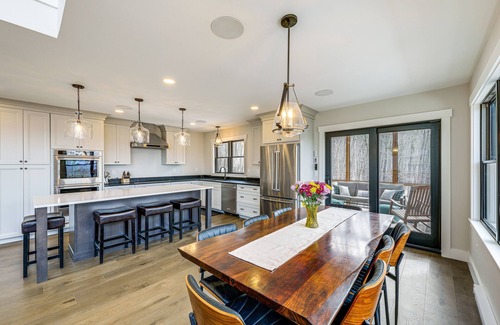 The hustle of the city becomes a distant memory at this 4-bed, 3.5-bath hideaway. Nestled amid Maine's western mountains, the 3,100-square-foot Stoneham vacation rental marries modern luxury with forested seclusion to ensure an elevated stay. Start each day with a warm-up in the infrared hot yoga studio, followed by a mid-morning hike on the Baldface Circle Trail or an afternoon at Kezar Lake. Later, retreat to the screened porch to watch the sunset before easing sore muscles in the soaker tub.