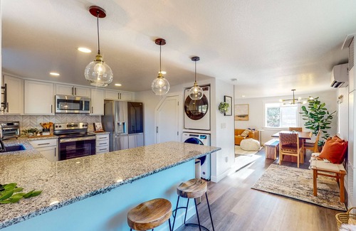 After fun-filled days exploring the area, return home to your modern-chic hideaway. Stylish decor and ample natural light create a warm and welcoming vibe, and a thoughtful two-story design has the living areas on the bottom floor and the well-appointed bedrooms upstairs.