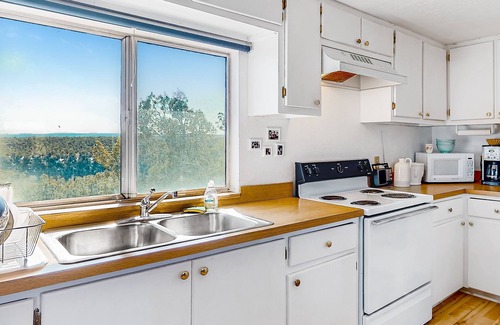 At the home itself, you’ll find abundant natural light and mountain views from nearly every window. Use the full kitchen (no dishwasher) to whip up snacks or meals, then dine alfresco on the covered patio downstairs. In the evening, relax in front of the wood-burning fireplace while you scroll social media with the free WiFi. Even better, unplug entirely and step back outside to admire the clear night sky, free of light pollution. Sleep will come easily in either serene bedroom - another dreamy pastoral day awaits tomorrow.