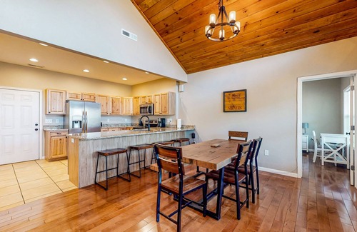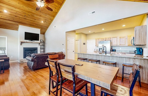 Blue Sky Lodge VRV is the perfect spot for a couple's getaway, family vacation, or escape with friends. Relax and unwind in this rustic yet stylish space. A unique mountain getaway awaits with this warm and welcoming two-bed, three-bath cottage, just outside of Murphy, North Carolina. Blue Sky is close to both the Georgia and Tennessee state lines, and minutes from Harrah's Cherokee Casino. 4-Wheel or All-Wheel drive vehicles are recommended, but not necessary