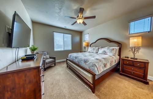 7.5 miles from St. George Temple in Santa Clara, Mountain View Retreat: Paradise Village at Zion #39 provides accommodations with access to a hot tub and fitness room. With mountain views, this accommodation offers a patio and a swimming pool. The vacation home also offers facilities for disabled guests. The air-conditioned vacation home is composed of 4 separate bedrooms, a living room, a fully equipped kitchen with a dishwasher and oven, and 3 bathrooms. Towels and bed linen are featured in the vacation home. There's also a seating area and a fireplace. Guests can also warm up near the outdoor fireplace after a day of cycling. Jacob Hamblin House is 2.2 miles from the vacation home, while Brigham Young Winter Home Historical Site is 6.6 miles away. St. George Municipal Airport is 16 miles from the property.