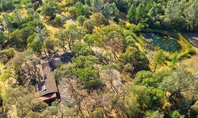 - Shangrila with view of wildlife pond above artist's studio in Rough and Ready