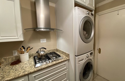 The bedroom has a luxuriously comfortable king size bed with soft high thread count linens. The galley kitchen is well appointed with all new Keurig coffee maker, microwave oven, four burner gas range, a small refrigerator/freezer, blender, toaster and a range of cookware, utensils, cups and glassware. Coffee, tea and a few basics are also provided. There are also plenty of fresh towels including large beach towels for the pool.
