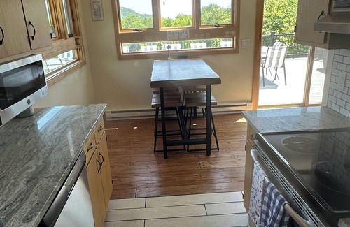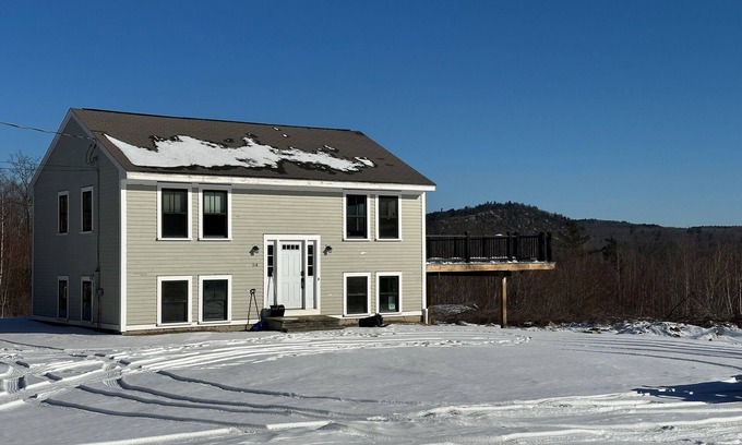 Relax with the whole family at this peaceful retreat on 100 acres of Maine woodland. Panoramic view of Bear Mountain from the specious brand new 900 sq ft deck with seating for 18 at the custom banquet table, and new 5 burner gas grill. Entire interior has been updated including both bathrooms and kitchen. Heated bathroom and kitchen floors. Washer/dryer. High speed internet and 5 smart TVs. 4 bedrooms sleep 8, and room for 4 more adults (or even more kids) on the couches. 30 minutes from Lewiston/Auburn area & shopping. 45 min/1 hr to ski areas such as Lost Valley and Sunday River. Snowmobile trails (ITS 87, 89) and 2 lakes nearby.