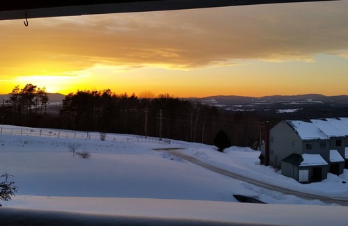 2Bedroom condo with spectacular view of Willoughby gap with easy bike and ski trailside access. (No driving necessary) Located 400 paces from Burke resort hotel where guests can access a pool. hot tub. weight room and other amenities. Well equipped kitchen, great wifi and tv streaming services( wifi and streaming for fall and winter and can be activated with a few days request other times if needed ). OTA tv off season and with wifi activated fire TV and Roku tv. Washer and dryer, wood stove and private deck with outdoor furniture. Note- Exterior has been upgraded since these pictures. ( I'll get some new ones this winter)