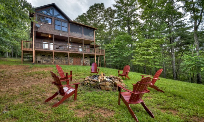 Mountain Views! Firepit! Hot Tub! Unwind, Unplug, Explore! Near the Toccoa River | Cabin in Blue Ridge