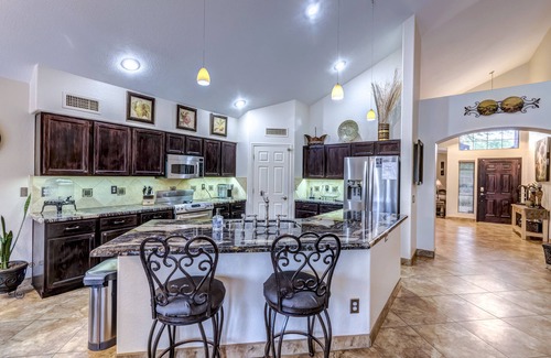 Best-rates for the Rancho Vistoso house starts from $416 per night with includes Air Conditioner, Balcony/Terrace, Accessibility, Security/Safety, Internet, Kitchen, Parking, Sports/Activities, Bedding/Linens, Wellness Facilities, Fireplace/Heating, Hot Tub, Laundry, Pet Friendly, TV, Private Pool, Guest Services, Entertainment, Barbecue/Outdoor Cooking, Child Friendly, Pool with all other amenities. Perfect for Weddings is committed to ensuring every guest experiences a comfortable and extraordinary stay, whether planning a romantic getaway, a honeymoon, a pet-friendly stay, or celebrating with the entire wedding party.