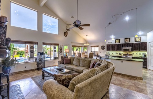 MOUNTAIN VIEWS, KOI POND, HOT TUB, POOL, 1GIG WIFI, 1/2 mile Starbucks/Safeway! has 4 Bedrooms , 2 Bathrooms, and max occupancy of 8 people. The minimum rental for this property is 1 nights, but this can change depending on the season you plan on staying. Previous guests have given good rated it, and VRBO labeled it a top-rated House because of the excellent services rendered by the owner or manager of this House, and has consistently provided great experiences for their guests. Most families or guests that use it recommend it to their friends and some of them are repeat guests. House has a friendly neighborhood, and the Rancho Vistoso has interesting places to visit. If you want to learn more about the House in Rancho Vistoso, such as places to visit and things to do nearby, you can check below to learn more.