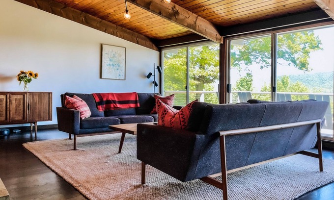 Mid-century modern home renovated within the last few years. Enjoy the stellar mountain views with walls of sliding glass windows looking out over the mountains and gardens! Cozy up to the huge fireplace in the light filled upstairs living room or cook a great meal from your farmers market haul in the custom renovated kitchen complete with top appliances (Sub Zero, Bertazzoni) and Danby Marble island. Or sit on the deck to watch the sunrise over the mountains while you enjoy your morning cup of coffee. Or stargaze at night while you hear the owls hooting! This truly is a magical spot to enjoy all that southern VT has to offer!