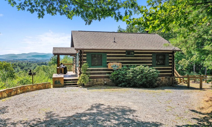 PRIVACY AND SPECTACULAR VIEW! A winding drive through the woods leads to a newly renovated Chink-Log cabin with incredible long range Appalachian Mountain views. Upscale rustic furnishings and decor with a outdoor fire pit for roasting marshmallows on cool evenings. This cabin is pet friendly and offers a nice fenced-in area. Perfect for your romantic get-a-way or as a cozy place to just relax and unwind. Paved roads inside neighborhood make ingress/egress easy and convenient. 10 min drive to downtown Blue Ridge.