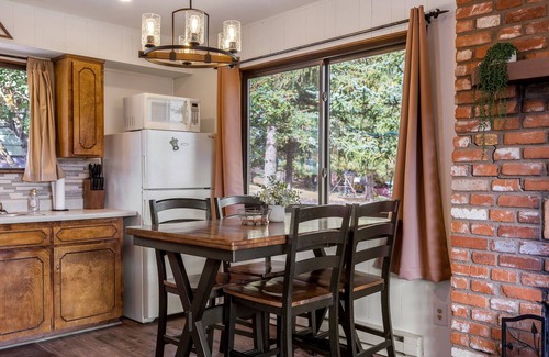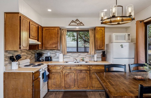 At Mountain Vista Summar, you'll find a range of amenities designed to enhance your stay and create unforgettable memories. The open floor plan seamlessly connects the living room, kitchen, and dining area, featuring a gas fireplace that sets the mood for cozy gatherings. A spacious deck offers breathtaking views, perfect for enjoying sunsets or hosting pre-wedding brunches. With comfortable sleeping arrangements for six, including two queen beds and a pull-out sleeper sectional, you and your guests can relax after a day of festivities. Additionally, enjoy modern conveniences such as strong Wi-Fi, Direct TV, and a fully-equipped kitchen along with complimentary kayaks and fishing equipment at nearby ponds.