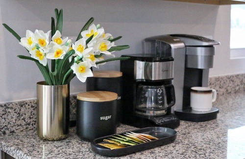 Cozy up in the living room on the modern style sofa to watch your favorite movie on the large smart TV with Netflix. A large assortment of books and board games are provided as an invitation to unplug and spend quality time with your loved ones.