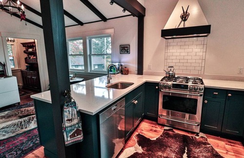 The bedrooms are clean, crisp and just the right size to accommodate a queen bed and your belonging. The main level bedroom and adjacent bathroom is quietly tucked away down a small hall off of the living room for those needing single floor access. Walk up the beautifully restored stairway to the 2nd and 3rd bedrooms as well as a 2nd full bathroom. As a bonus, head downstairs to the basement tv room where the kids will enjoy their own space to play or watch TV. The home has over 2000 square feet providing ample space for a group of 6.