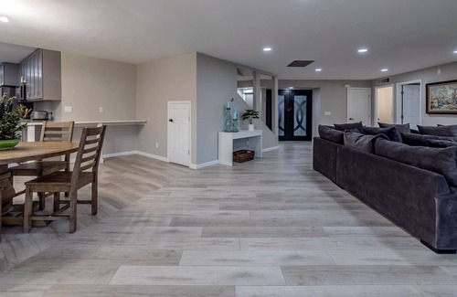This homesleeps 12 people comfortably with two king beds, two queen beds, a full-size bed with a twin-size trundle underneath along with a twin-sized daybed. Whether it's just you and your family, or if it's multiple families and couples - there is plenty of room to spread out amongst the numerous living areas and outdoor decks. Once you step out onto one of the four expansive decks, you will be taken away by the panoramic views of the Tucson valley and the natural desert landscape that surrounds this beautiful home. You'll be amazed by how peaceful this property is and the privacy it provides on a full one acre of land.