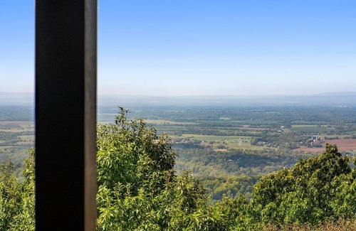 Trying to decide between dramatic views and a poolside escape? How about both! The pool at this mountaintop cabin is perfectly situated to soak in the 100-mile views over the Shenandoah Valley. Once you've had enough sun, curl up on one of the man porches for a lazy afternoon, or wind down the day at the rock fire pit. When the weather cools you can warm up indoors at the pellet stove in the epic great room. You are going to love this cabin escape!