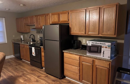 Our Mountaintop retreat is waiting for you at this 2-bedroom cottage. Nestled in a tranquil setting, this lovely retreat features 1 king bed, 1 queen bed, and 1 bunk bed. With amenities like WiFi, heating, and a washing machine, guests can relax and unwind in this peaceful oasis. The bathroom includes a shower and a hairdryer for added convenience. We hope you'll enjoy your stay at our cottage.