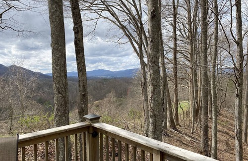 Super comfy three bedroom summer house or two bedrooms in winter, with a breathtaking view of the Appalachian and Smokey Mountains. Open loft master bedroom and en-suite full bath, main floor bedroom and full bath, and a ground floor bedroom/playroom and full bath/laundry room. Full kitchen with all the utensils you could possibly need and a wrap around deck to relax and take in the view. Sip your morning coffee and watch as the clouds burn off the valley to reveal the gorgeous view. Listen to the train in the distance as it makes its way around Green Mountain along the Toe River.