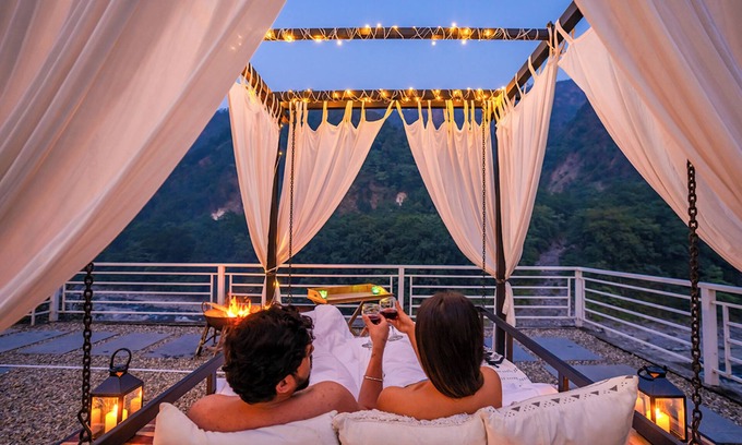 Best-rates for the Moustache Rishikesh Riverside Resort starts from $144 per night with includes Kitchen, Parking, Designated Smoking Area, Internet, Air Conditioner, TV, Bedding/Linens, Guest Services, Child Friendly with all other amenities. Perfect for Weddings is committed to ensuring every guest experiences a comfortable and extraordinary stay, whether planning a romantic getaway, a honeymoon, a pet-friendly stay, or celebrating with the entire wedding party.