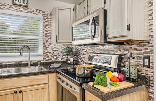 ☀️Fully-equipped kitchen with stainless steel appliances and a convenient island to prep the most delicious meals at your home away from home