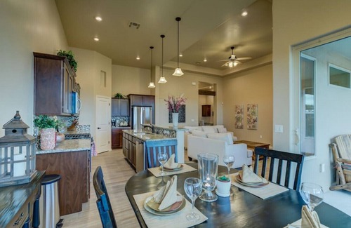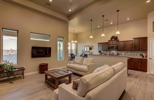 * Luxurious new home in desirable and upscale part of Las Cruces, built in 2019 with new furniture and appliances. It has 2 full baths and 3 bedrooms, including 1 kings, a queens, and a double bunk bed with a single rollaway under it