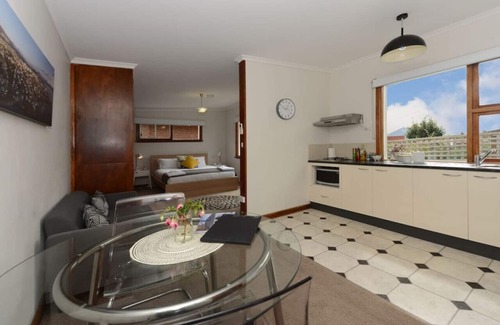 Ms Sophia's is a small, open plan studio apartment with a queensize bed, kitchenette and separate bathroom and laundry. It also has an off-street car-park which is very rare in Battery Point.