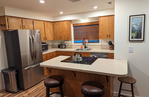 Great for families and groups alike with separate spaces for all to enjoy. Upstairs you'll find the kitchen, 2 bedrooms(1 with a king and twin bed and the other with a queen bed), a bathroom and a spacious family room and dining area with wood beams. The daylight basement is perfect for kids with a bunk bed (double/twin), couch, pellet stove, a second bathroom, laundry and smart TV.