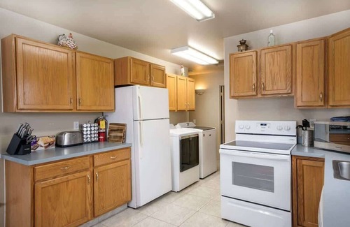 •KITCHEN: Dishwasher, electric stove/oven, refrigerator, microwave, cooking basics, dishware & flatware, spices, toaster, blender, coffee maker, electric kettle, trash bags & paper towels.