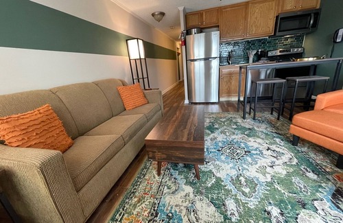Sleeping/bed arrangement: 1 Queen bed in bedroom, 1 pull out couch in living room, 1 additional Rollaway Bed (In closet). Can sleep up to 5 individuals, but 4 is more comfortable.