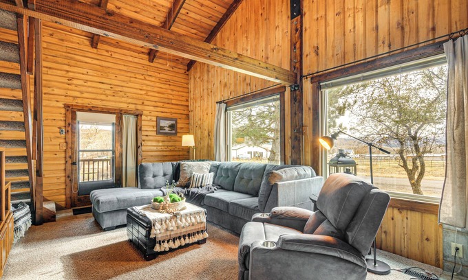 Adventure awaits at this Koosharem vacation rental! With quiet small-town charm, modern amenities, and a prime location near some of Utah’s premier hunting and fishing spots, this 2-bedroom, 2-bath cabin is perfect for any group of outdoor enthusiasts. Check out the Paiute ATV Trail, spend a day at Fish Lake, or explore Otter Creek State Park! Then, return to ‘Sportsman's Rustic Retreat’ to relax on the covered deck.
