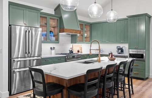 - Modern Amenities: Enjoy high-end Bosch appliances in the fully equipped kitchen, flat-screen TVs for entertainment, and a cozy fireplace, creating a warm and inviting ambiance for your wedding celebration.