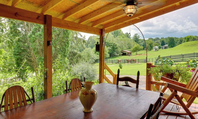A beautiful Smoky Mountain getaway awaits at this 2-bedroom, 1-bathroom cabin. This Warne vacation rental has traditional cabin charm, views of the rolling hills, and tons of spaces where you can unwind. Relax with some local wine in the hot tub, say hi to the horses that sometimes frequent the fence, or head into town to the outdoor pool for a swim. You’re just a drive away from float trips on Brasstown Creek, weekend classes at John C. Campbell Folk School, and scenic sites at Bell Mountain.