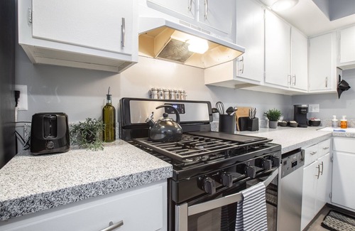 ✦ Complementary WiFi, tea and coffee. Your kitchen comes fully loaded with brand new stainless steel appliances such as a microwave, fridge, electric stove and dishwasher along with glasses, mugs, dishes and cutlery.
